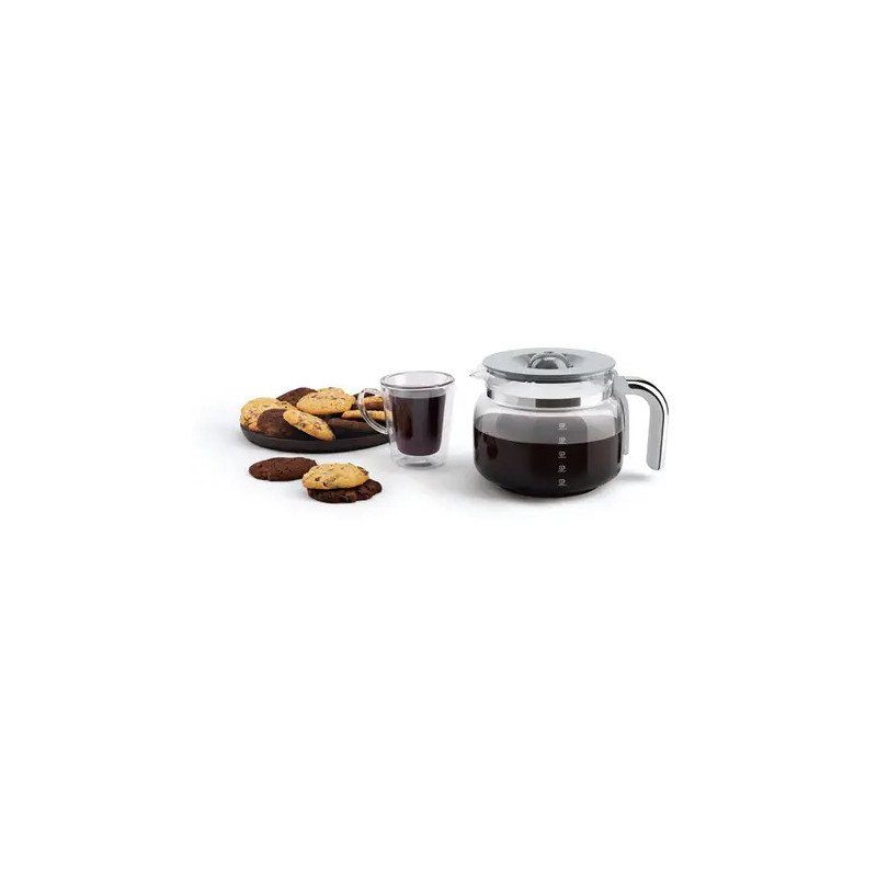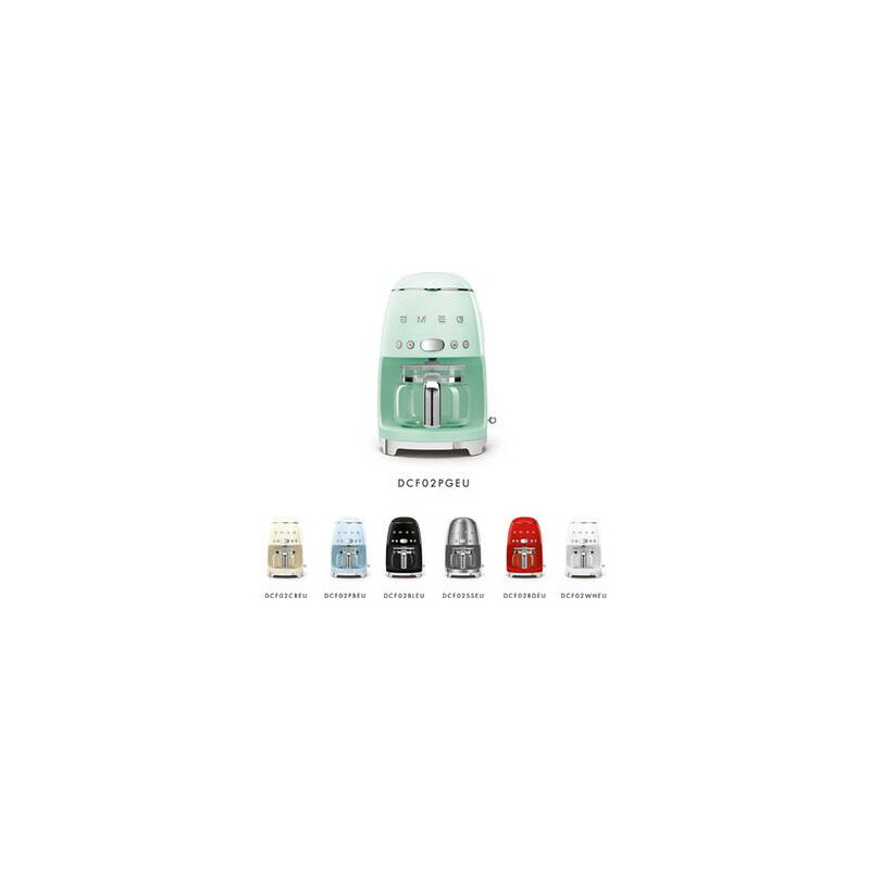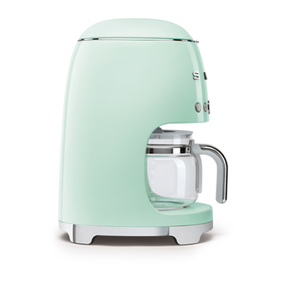 La cafetière DCF02PGEU de SMEG se pare d'un design vert d'eau,aux formes élégantes et style année 50 pour s'intégrer dans toutes les cuisines.