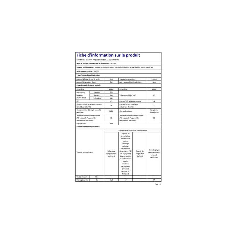 Cette cave à vin intégrable Le Chai LBN 270 s'intègre directement dans une niche de 60 cm de hauteur. Elle dispose d'une capacité de 27 bouteilles et est dotée du froid ventilé. Elle est équipée de 3 clayettes en bois avec fronton inox. Son éclairage intérieur LED et son contrôle électronique avec affichage digital vous offrent un confort d'utilisation. Le fonctionnement de cette cave est silencieux grâce à son système antivibration.