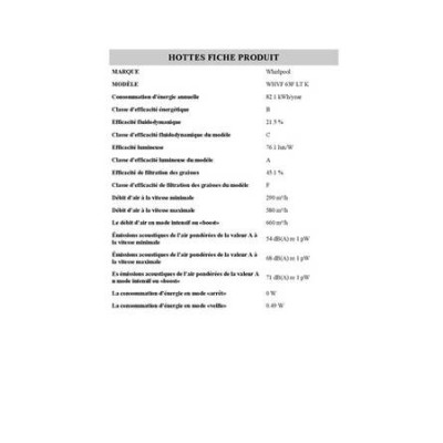 Cette hotte murale décorative Whirlpool WHVF93FLTKest dotée de 4 vitesses d'aspiration et une fonction booster, vous donnant la possibilité d'adapter la puissance nécessaire à vos besoins. Pratique, elle peut fonctionner en mode évacuation ou recyclagequi vous offre une réelle polyvalence. Son débit d'air peut aller jusqu'à 660m3/h afin d'assurer une filtration optimale, ainsi vous obtenez une cuisine saine. Cette hotte aspirante polyvalente vous donnera entière satisfaction en toutes circonstances.