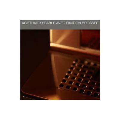 Profitez d'un design en acier inoxydable de qualité supérieure avec une finition brossée au niveau du bac de récupération et du bac à grains.