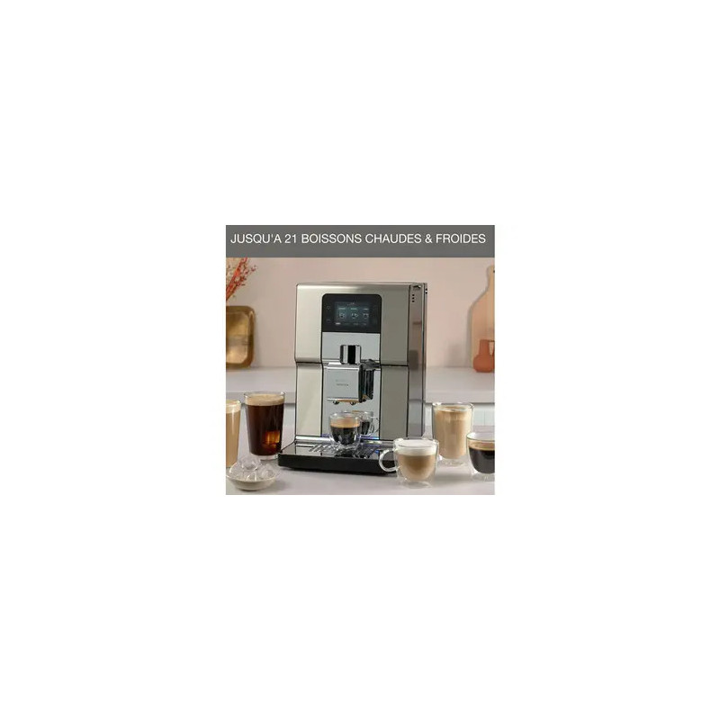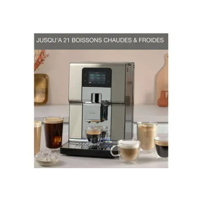 Avec un accès direct à plus de 20boissons chaudes et froides, cette cafetière en acier inoxydable propose jusqu'à 4intensités de café et 8profils différents pour une personnalisation avancée.