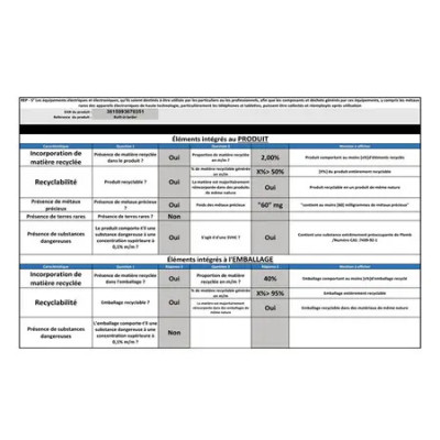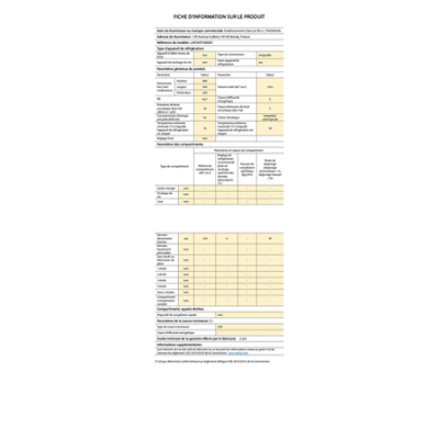 Caractéristiques | Classe énergétique | |