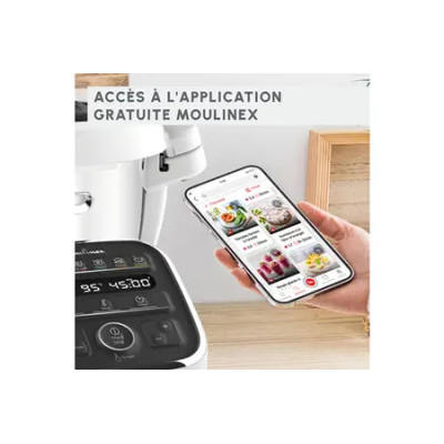 Vous pouvez découvrir de nouvelles recettes régulièrement grâce à l'application gratuite Moulinex. Vous avez également la possibilité de sauvegarder vos recettes préférées et de créer des listes de courses directement dans l'application. La fonction "Dans mon frigo" vous aide à trouver des recettes en fonction des ingrédients que vous avez sous la main, ce qui contribue à réduire le gaspillage alimentaire.